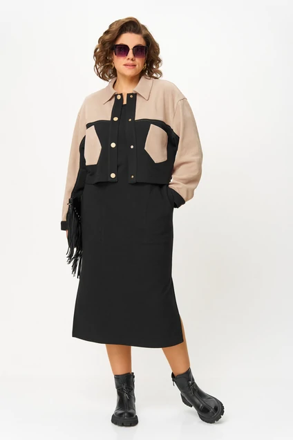 Жакет выполнен из комбинации 2 ух трикотажных полотен контрастных цветов. Светлое полотно имеет фактуру рубчика, темное полотно глаткое 100% хлопок.