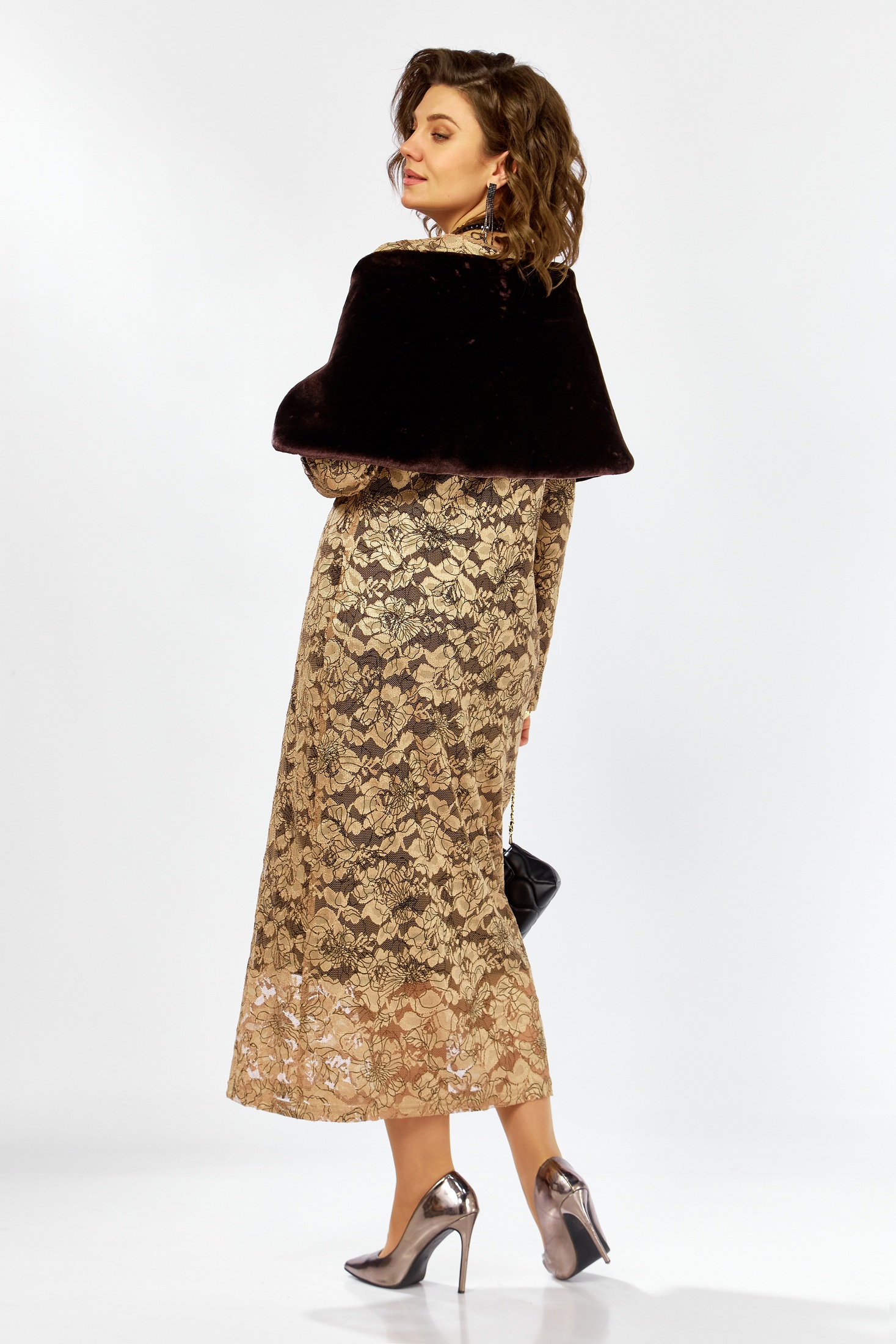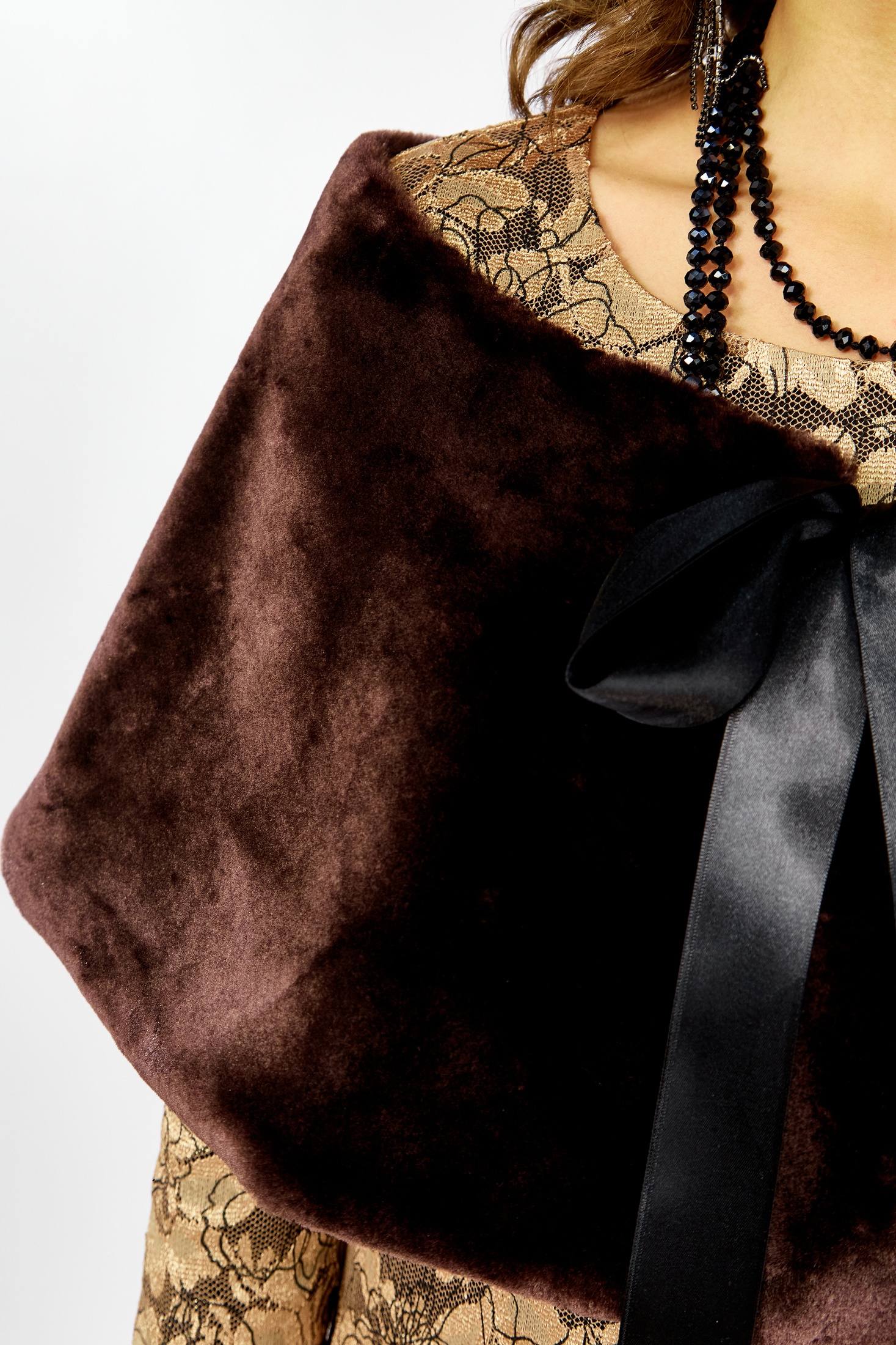 Элегантный и утонченный комплект с изящной меховой горжеткой, созданный для особых случаев в основе платье полуприлегающего силуэта на трикотажной подкладке из кружевного гипюра с контрастным рисунком в цветочной тематике, мягко драпируется , создавая воздушный легкий силуэт длинные рукава и свободный крой добавляют образу благородства и загадочности .