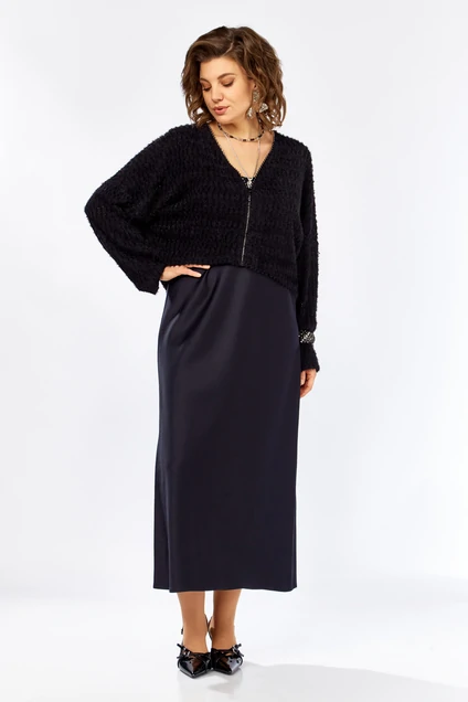 Лаконичный крой делает платье универсальным для любого случая в комплекте объемный джемпер из пушистой трикотажной травки, создает мягкий контраст фактур добавляет образу тепла и делает его более современным и расслабленным
