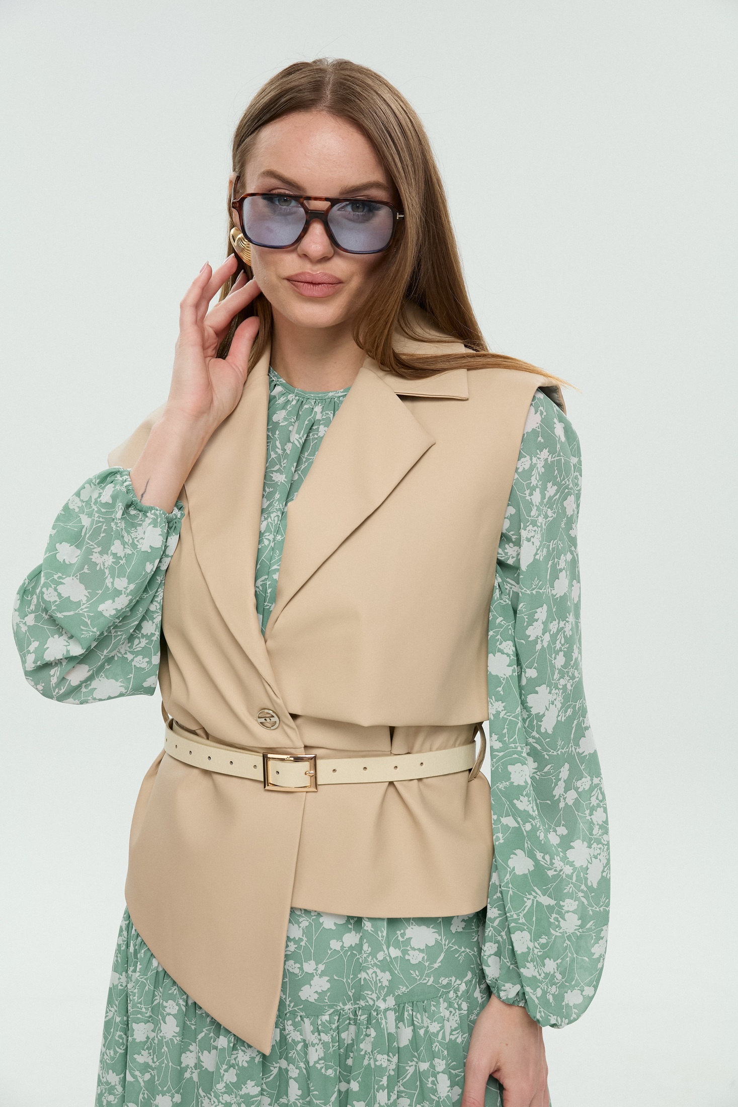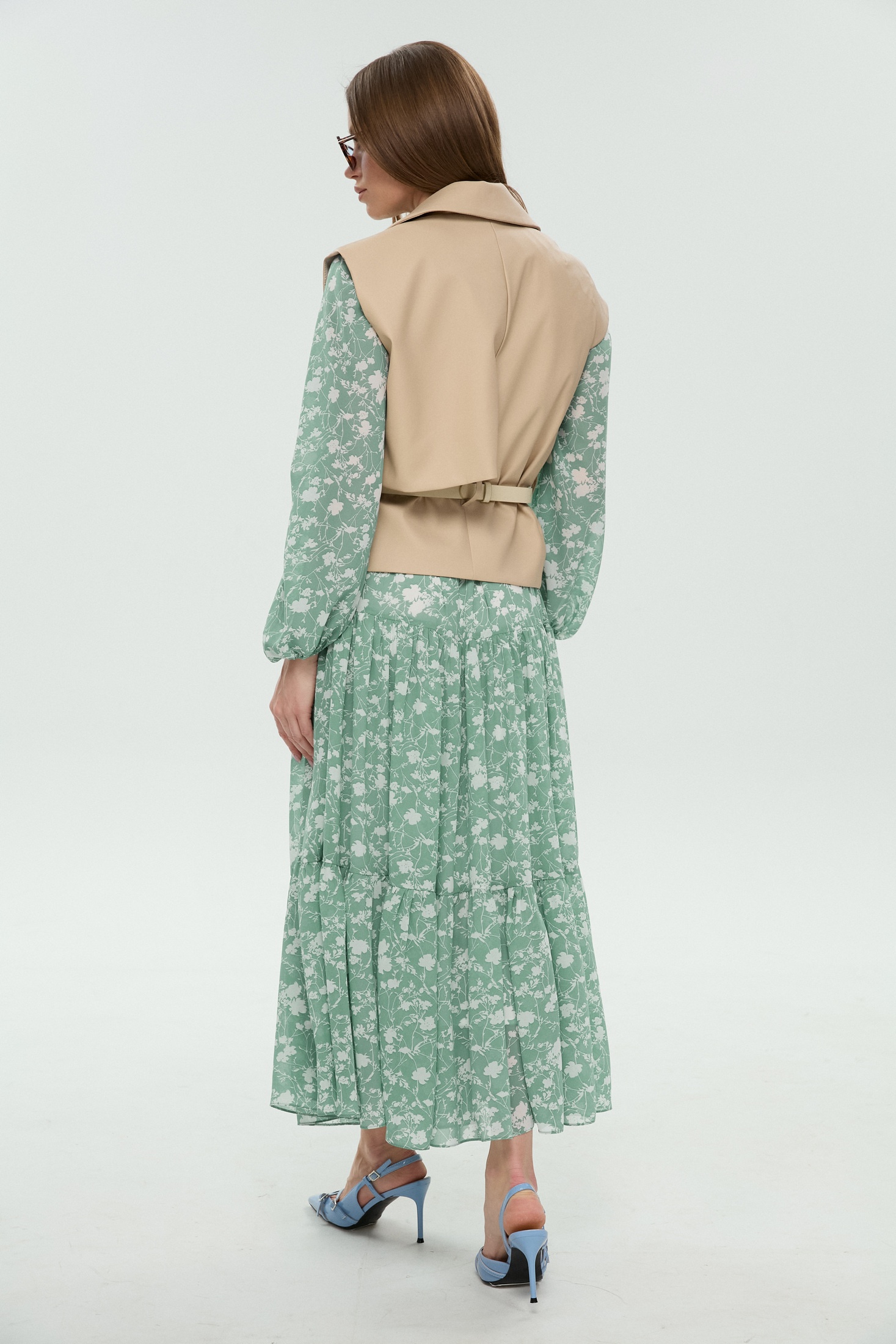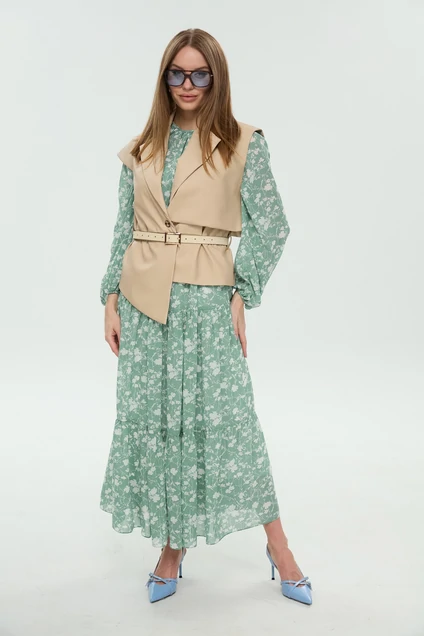 Костюм с платьем 1043-1 NikVa предлагает утончённый стиль для каждой модницы. Коллекция бренда NikVa воплощает гармонию классического и современного дизайна. Платье из шифона с цветочным узором создает лёгкий и воздушный образ, идеально подходящий для летних дней. Верхний ярус юбки из двух частей добавляет объём и текстуру. Рукава украшены сборкой на манжетах, придавая игривость. Жилет из экокожи с прямым силуэтом и пиджачным воротником подчеркивает многослойный фасон. Ремень акцентирует талию, добавляя изящества. Идеально для городских прогулок и встреч с друзьями. Пастельные тона и деликатные детали делают этот костюм универсальным вариантом для любого повода.