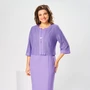 Комплект женский, относится к торжественно-нарядной одежде. Комплект женский, 2-х предметный, жакет и платье. Жакет женский прямого силуэта, длиной до линии талии, выполнен из кружевного полотна. Перед с 2-мя нагрудными вытачками, с 2-мя притачными вертикальными планками, с притачными планками по горловине. Спинка с притачной планкой по горловине. Горловина круглая, обточная, без воротника. Застёжка на декоративный пришивной крючок. Рукав втачной одно шовный, длиной 3/4 с притачной манжетой. Жакет без плечевых накладок. Платье женской длиной за колено, полу прилегающего силуэта. Перед с 2-мя отрезными бочками. Спинка с 2-мя таллиевыми вытачками, со средним швом, заканчивающимся шлицей. Горловина круглая, обточная, без воротника. Застёжка на потайную тесьму-молнию в среднем шве спинки. Рукав втачной, короткий, одно шовный. Платье с плечевыми накладками. Длина спинки жакета 45 см, длина рукава 41 см. Длина спинки платья 100 см, длина рукава 19 см.