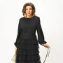 Платье полуприлегающего силуэта с втачным рукавом, станет идеальным выбором для создания стильного и комфортного образа. Горловина округлой формы. Застежка по спинке на воздушную петлю и пуговицу. По переду вытачки по линии груди. Спинка со средним швом и разрезом по низу. Рукав длинный объемный к низу с эластичной тесьмой. Юбка легкая и воздушная из сетки с отделкой из пайетки на завязке по талии, с высоким разрезом сбоку, отлично будет смотреться и отдельно в сочетании с брюками. Длина по спинке: 101 см. Длина рукава: 63 см. Длина юбки: 83 см.