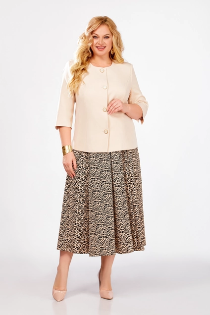Комплект 2-х предметный, состоящий из жакета однотон из поливискозной ткани и платья в принт из плательной вискозной ткани.