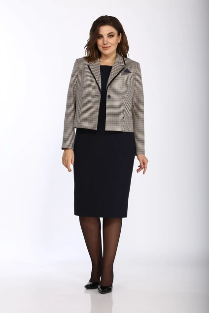 Костюм с платьем 750 гусиная лапка + темно-синий Vilena