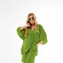 Элегантный женский костюм с шортами выполнен в спокойном морском оттенке. Комплект включает свободную рубашку с центральной планкой на пуговицы и отложным воротником на стойке, создающим аккуратный силуэт. Короткие рукава и спинка с кокеткой добавляют изысканности образу. Шорты свободного кроя дополнены удобным притачным поясом на резинке, обеспечивающим комфорт при носке. Этот костюм идеально подойдет для создания стильного летнего образа.