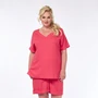 Стильный летний женский костюм, выполненный из высококачественной смеси натурального льна и вискозы. Насыщенного красного цвета, этот костюм включает в себя удобные шорты и просторную тунику. Туника прямого силуэта дополнена V-образным вырезом и элегантными разрезами по бокам, что обеспечивает свободу движений и добавляет изысканности образу. Длина туники составляет 75 см. Шорты свободного кроя оборудованы удобными карманами и эластичным поясом для идеальной посадки. Особенностью шорт являются декоративные стрелки и манжеты по низу, длина шорт — 55 см.