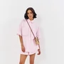 Комплект блузка с шортами. Блузка свободного силуэта с карманами по переду. Характеристики: выполнена из блузочной ткани в розовом цвете, центральная застежка на петли и пуговицы, по спинке отрезная кокетка, по карману, рукаву и воротнику отделочная тесьма в цвет ткани (тесьма может отличаться по дизайну!). Длина рубашки по переду 78 см, длина рукава 25 см. Шорты свободного силуэта. Выполнены из блузочной ткани в розовом цвете, по низу декоративная тесьма (тесьма может отличаться по дизайну!). Пояс на резинке. Длина 37 см.