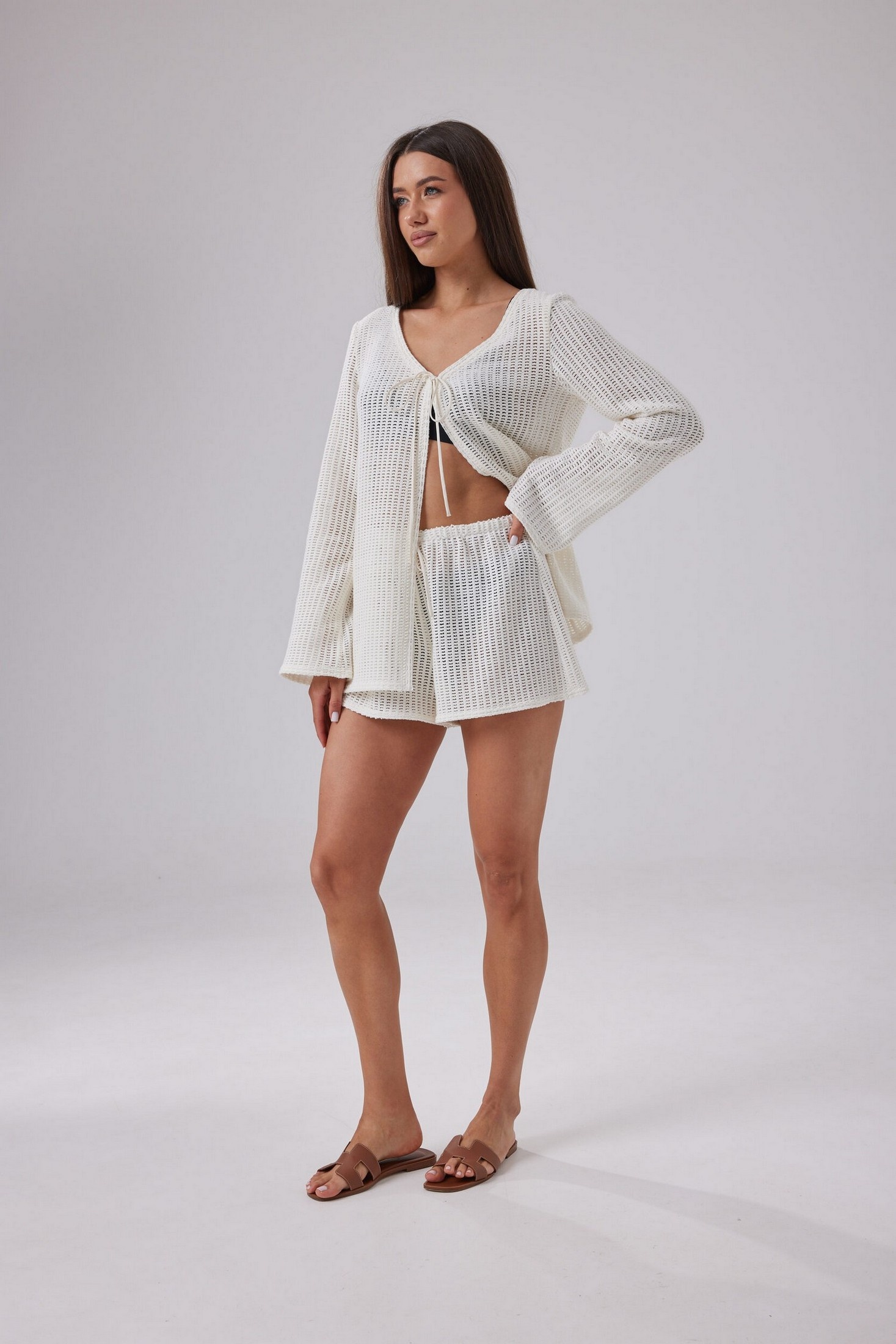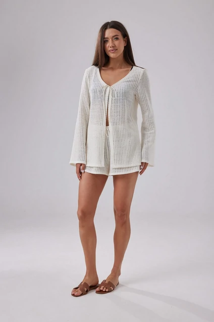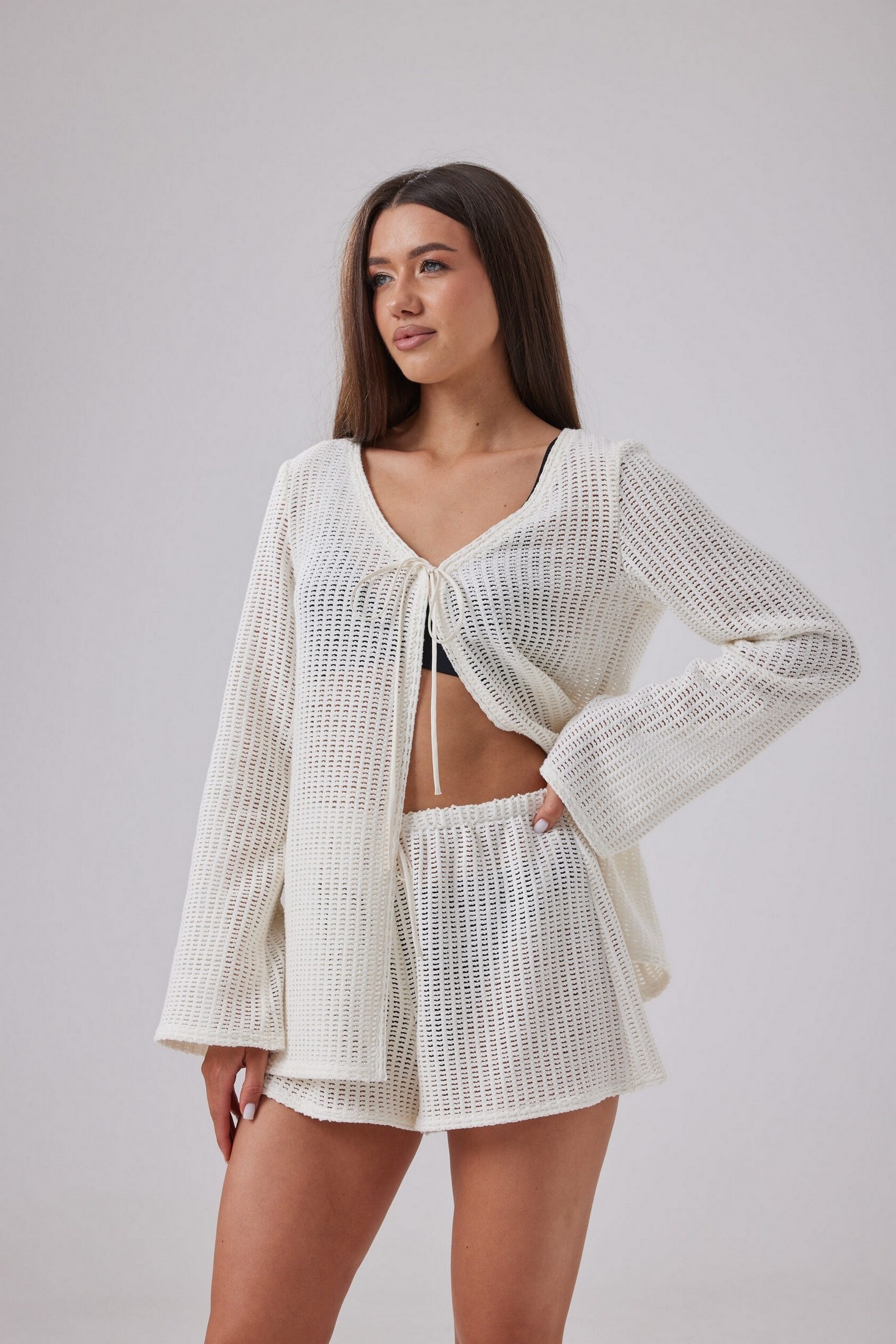 Летний женский комплект из фактурного полотна в сетку. Состоит из блузки и шорт.