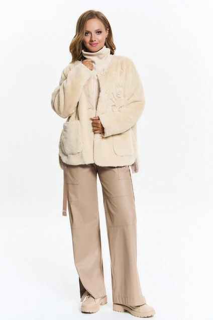Трендовый жакет из легкого и шелковистого экомеха свободного силуэта, с расширенной спинкой, застежкой на пуговицы, круглой горловиной, с удобными накладными карманами. Изделие на подкладке из непродуваемого материала. Перед и спинка жакета декорированы оригинальной авторской вышивкой.