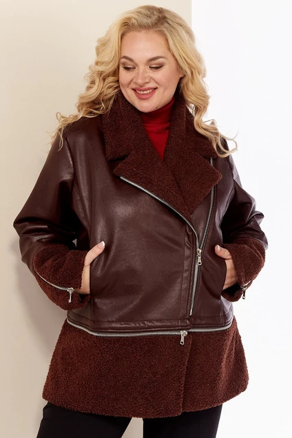 Полочка на косую, застежка на молнию. Воротник втачной с лацканом. Спинка разрезная, по полочке обработаны внутренние карманы. Рукав втачной, одношовный. Нижняя часть рукава выполнена мехом наружу, с подрезом, в который вставлена функциональная молния.
