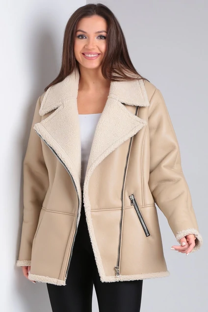 Воротник отложной. Спинка разрезная, по полочкам обработаны карманы на молнии. Застежка на косую (металлическая молния). Рукав двухшовный втачной. В модели есть прибавка на верхнюю одежду.