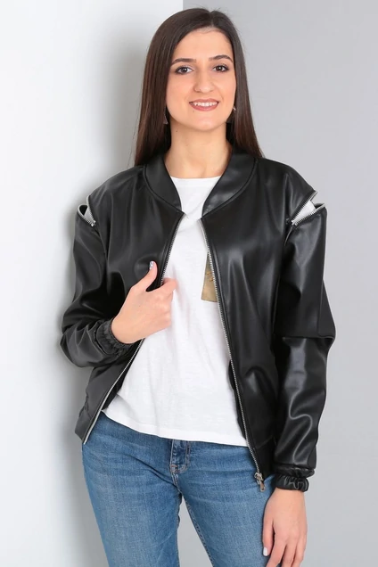 Оригинальная куртка из экокожи от Celentano. Застежка центральная на молнию, горловина обработана фигурным втачным воротником. На полочке расположены внутренние карманы на молнии. Спинка с центральным швом. Рукав втачной одношовный, в месте втачивания рукава в плечо обработаны функциональные молнии. Снизу рукавов и куртки широкая манжета на резинке.