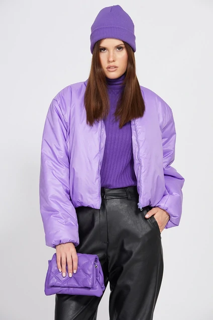 Куртка выполнена из плащевой ткани, утепленной изософтом. Куртка О-образного силуэта, длиной выше линии бедер. Спереди застежка на молнию. Карманы в рельефах, застегивающиеся на потайную молнию. Спинка цельная. Плечевой шов спущен. Воротник-стойка. Рукав рубашечного покроя, двухшовный. Низ рукава и низ куртки на эластичной тесьме. Куртка на притачной по низу подкладке.