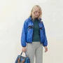 Куртка свободного силуэта из экокожи, на подкладке. Рукав реглан 3/4, объёмный с подрезом в области локтя, низ у рукава сосборен на эластичную тесьму. По горловине воротник стойка, застёжка на молнию. По переду аппликативная вышивка из экокожи, низ куртки сосборен на эластичную тесьму.