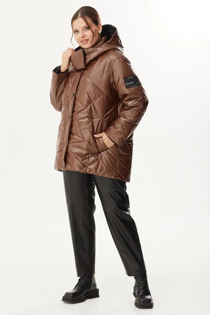 Стильная зимняя куртка свободного силуэта. Центральная застежка на молнию и металлические кнопки. Дополнена съемным капюшоном и боковыми функциональными удобными карманами. Рукав слегка спущен, по низу дополнен скрытой манжетой, выполненной из довяза. Куртка выполнена из стеганой плащевой ткани с водоотталкивающей пропиткой. Утеплена наполнителем HOOPER.