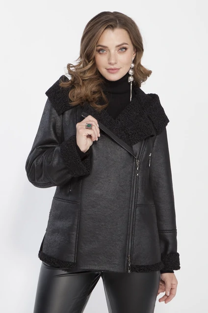 Куртка женская из трикотажного полотна дубленка. Застежка ассиметричная на молнию. По переду карманы прорезные с молнией. спинка и полочка отрезные по линии талии. Рукав втачной с отворотом. По горловине капюшон с широким отворотом.