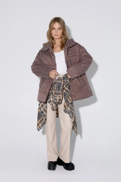 Детали: прямой силуэт, свободый покрой, спущенная линия плеча, капюшон, функциональные карманы, застежка на пробивные металлические кнопки, на подкладке. Наполнитель куртки ISOSOFT толщиной 200 г/м2.