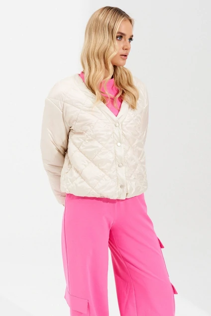 Куртка-бомбер из плащевой ткани стеганое по переду и по спинке на бельгийском утеплителеisosoft 100 г\м . Современная модель, притягивающая к себе интерес. Функцию застёжки передней части, выполняют кнопки по планке . V-оьразный вырез горловины . Рукав втачной, со спущенной проймой на манжете с резинкой . По низу резинка. Куртка на подкладке.