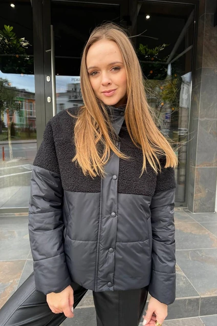 Куртка утепленная, на синтепоне.Верхнаяя часть из искусственной овчины.Длина 60 см.Ширина спинки 52/52/54/54см.Ог 122,126,130,134 см.Длина рукава 57 см.Ширина плеча 18/18/19/19 см.Ширина низа 120*124*128/132 см.