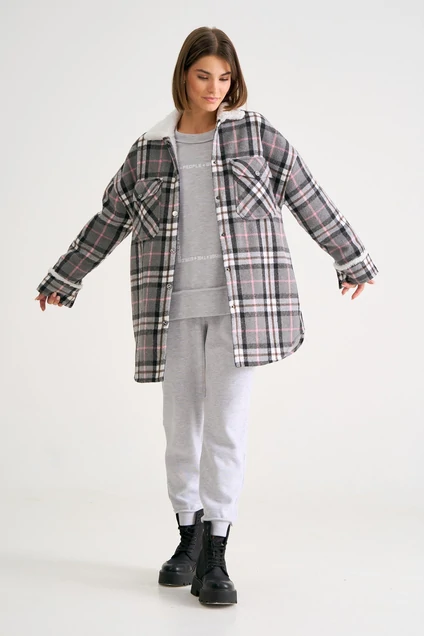 Куртка-рубашка свободного силуэта со спущенной линией плеча. По полочкам накладные карманы с клапаном. Застежка центальная на кнопки. Рукав с манжетам. По спинке кокетка. Низ фигурный.