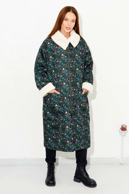 Удачным выбором для холодной и ветреной погоды станет пальто ArtRibbon с дизайнерским принтом. Пальто прямого силуэта с вертикальными рельефами и теплыми накладными карманами. Рукав длинный, втачной. Воротник отложной на меху. Застежка центральная на тесьму-молнию. Возможно отличие фотографии по оттенку, связанное с разной цветопередачей монитора.