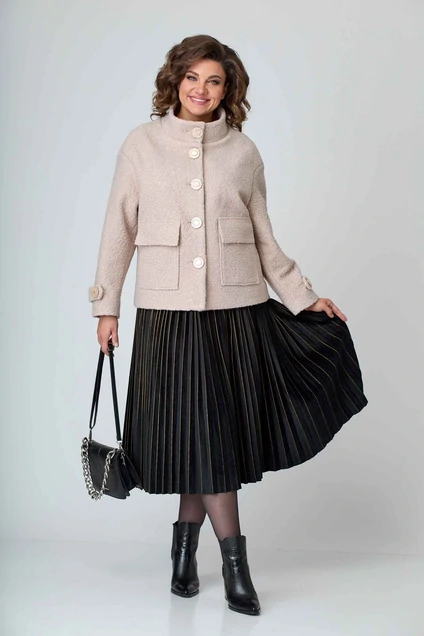 Полупальто женское свободного силуэта, из пальтовой буклированной ткани. Воротник стойка. Рукав спущенный с патой на пуговицу. По переду центральный застёжка на пуговицы. Карманы накладные с клапанами в области бедра. Спинка свободная. Изделие на подкладке. Длина до середины бедра.