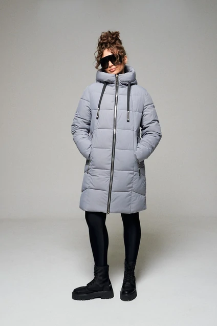 Стильное женское полупальто из гладкокрашеной полиэфирной ткани, на синтетической подкладке, с утепляющим наполнителем холлофайбер, уникального качества, который практически неощутим в весе и толщине, в два раза теплее обычных синтетических утеплителей, легко восстанавливает форму и не теряет ее, обладает эффектом термоса (сохраняет тепло тела). Рекомендованный температурный режим до -25 градусов. Полупальто прямого силуэта, базового классического кроя. Передняя часть изделия с вертикальными подрезами и боковыми функциональными карманами на металлических молниях. Застежка центральная, на разъемную тесьму «молния» с двумя бегунками и ветрозащитной планкой внутри. Застежка-молния имеет длину от линии низа до верхнего края капюшона. Спинка с двумя вертикальными рельефами.
