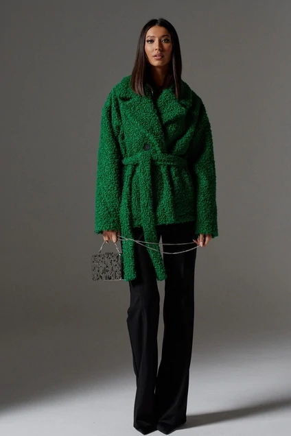 Стильная укороченная шуба прямого кроя выполнена из искусственного меха кудрявой текстуры. Актуальное и стильное изделие вне моды и вне времени, дополнит любой образ в разных стилях. Характеристики: прямой крой, подкладка, крупный воротник с остроугольным лацканом, застежка центральная на петли пуговицы, по низу изделия шлевки, в комплекте пояс из ткани основного изделия, рукав спущен, в боковых швах карманы. Длина изделия 66 , длина рукава 76 от края горловины.