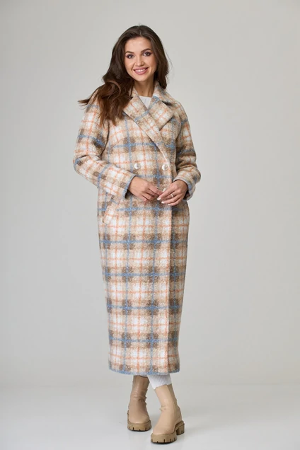 Пальто 831 бежевая клетка БелЭльСтиль