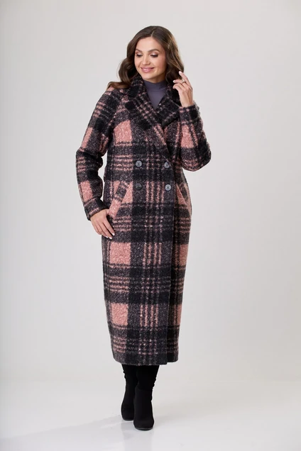 Пальто 831 розово-черная клетка БелЭльСтиль