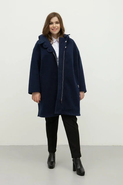Полупальто женское демисезонное из ткани пальтовой группы, прямого силуэта, однобортное, с застежкой на молнию и две петли и пуговицы.