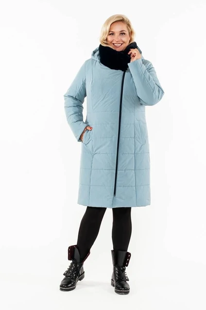 Пальто женское утепленное из ткани плащевой группы, полуприлегающего силуэта со смещенной застежкой по борту на тесьму-молнию с ветрозащитной планкой.