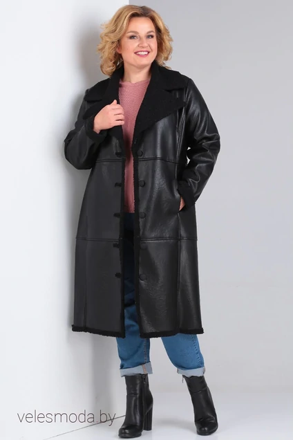 Дубленка выполнена из высокого качества экокожи, верхний слой - полиэстер 100%, нижний - полиуретан 59%, вискоза 41%. Полочка и спинка разрезная состоящая из нескольких частей, рукав одношовный. Карманы внутренние в рельефе полочки. Воротник отложной, широкий. Застежка центральная на петли пуговицы (пуговицы двойные-декоративная и потайная). Все швы отстрочены гарусной ниткой. По эксплуатационным характеристикам не уступает изделию из натуральных материалов. Длина по спинке 110 см , длина рукава 63 см