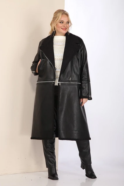 Изделие выполнено из высококачественной мягкой экокожи, которая не трескается и не растягивается, в отличие от натуральной кожи. Все молнии на изделии металлические. Пальто без подкладки.