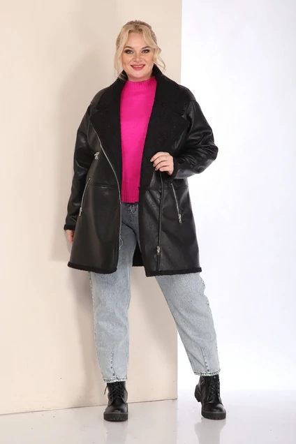 Изделие выполнено из высококачественной мягкой экокожи, которая не трескается и не растягивается, в отличие от натуральной кожи. Все молнии на изделии металлические. Пальто без подкладки.