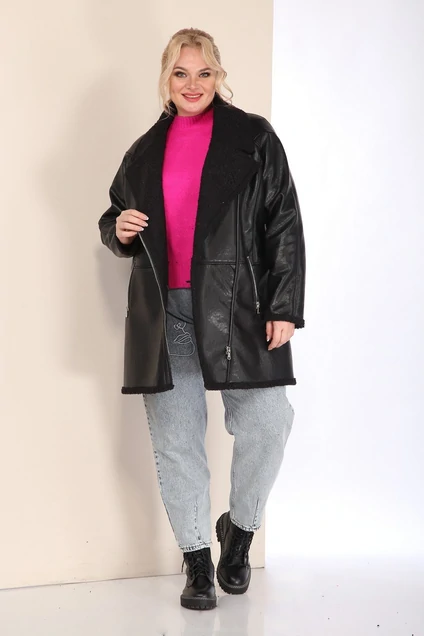 Изделие выполнено из высококачественной мягкой экокожи, которая не трескается и не растягивается, в отличие от натуральной кожи. Все молнии на изделии металлические. Пальто без подкладки.