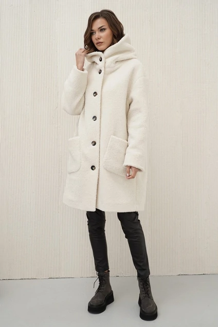 Сегодня на повестке дня – модное пальто! Поскольку половина золотой осени почти прошла, актуальность пальто достигает своих вершин. Casual в виде однобортного пальто выше колен, стильный oversize, в модели кокон, трендовый «Teddy bear». Это пальто элегантно и лаконично, нет слишком замысловатых форм и броского декора. Свободный силуэт со слегка заниженной линией плеча, рубашечный покрой, застежка центральная на петли и пуговицы и необычный капюшон-воротник. На полочке наклонно расположены накладные карманы. Рукав с широкой подгибкой, которая может быть использована как отложенная манжета. Длина пальто около 92см, длина рукава с плечом около 73см
