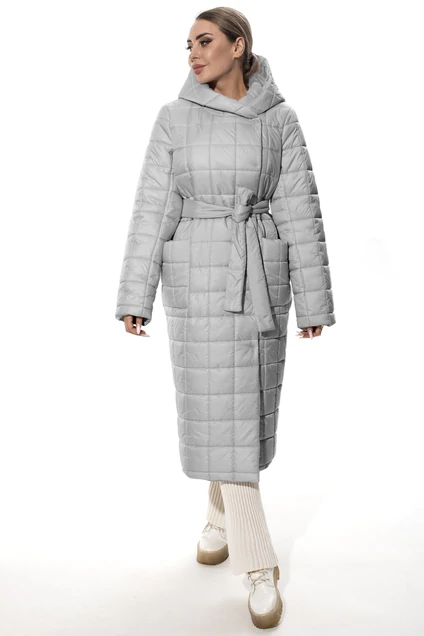 Пальто утепленное с центральной двубортной застежкой на пришивные кнопки, капюшоном. По переду- накладные карманы. Спинка цельная. Рукав втачной, двухшовный. Пальто со съемным поясом.