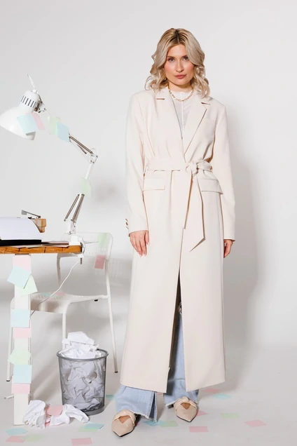 Жакет в пол — однобортный, прямой, с четкой линией плеча, похож на мужские модели, но делает образ женственным. Выполнен из плотной полувискозы, пластичной, износостойкой и мягкой. Для него предусмотрен длинный пояс, который поможет подчеркнуть талию. По низу высокая шлица для удобства при ходьбе. Комбинируйте с брюками или джинсами. На подкладке. Длина - 134 см.