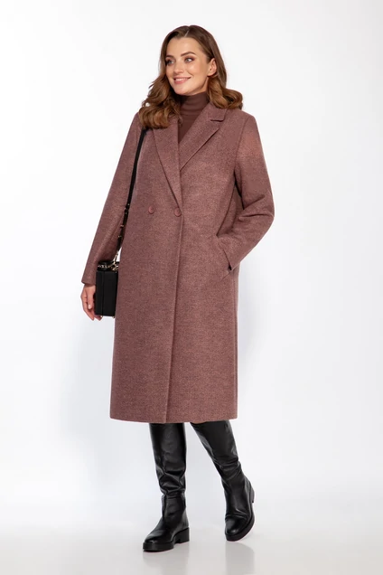 Пальто выполнено из пальтовой ткани с меланжем. Молодежное пальто свободного силуэта, с отложным воротником и лацканами, со смещенной застежкой на 2 пуговицы (внутри одна потайная), внутренние карманы с листочками ,у плечевого шва вытачки. По спинке центральный шов и шлица. Рукав длинный, втачной, двухшовный. Пальто полностью на подкладке. Съемный пояс завязывается на узел, подчеркивая линию талии. Длина пальто сзади по спинке от плечевого шва 110 см, дина рукава пальто 63 см.