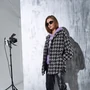 Пальто свободного кроя,со спущенной линией плеча,из ткани с актуальным прин том''пье-де-пуль''.Пепед с накладными карманами и центральной застёжкой на петли-пуговицы.Рукав объёмный,со складками.Пальтона подкладке,с карманами в боковых швах и фигурным низом. длина издели+RCя - 80см
