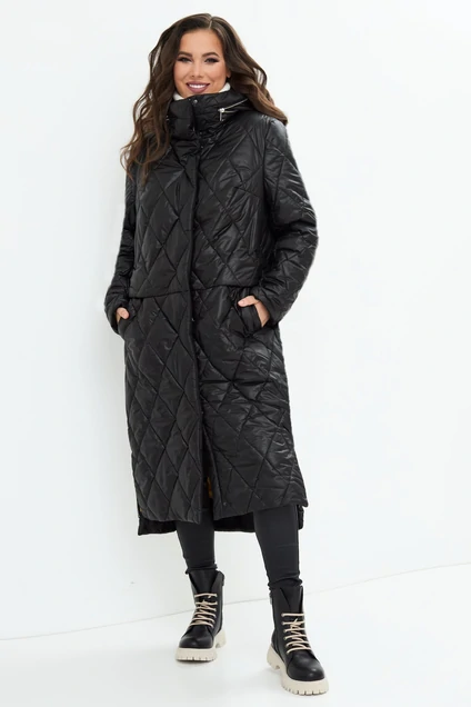 Стильное теплое зимнее пальто свободного кроя с центральной застежкой на реверсионную молнию а так же планку с металлическими кнопками. Выполнено из плотной стеганой плащевки,утеплено наполнителем HOOPON. Пальто дополнено функциональными карманами и яркой подкладкой со стильной термоаппликацией. Капюшон маскируется под металлическую молнию, превращаясь в воротник-стойку. Длина пальто от плечевого шва по переду 109см, по спинке 118см. Длина рукава 63см.
