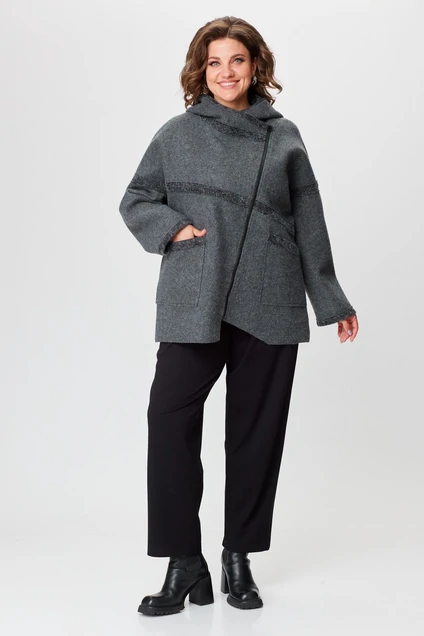 Женское полупальто для повседневной носки выполнено из шерстяной ткани. Полупальто свободного кроя с капюшоном. Плечо спущенное, рукав длинный втачной. Перед изделия с асимметричной косой застежкой на разъемную тесьму-молнию. Спинка прямая цельная. Полупальто украшено рельефными швами срезами наружу. По переду накладные карманы, на одном из которых в качестве декора используется декоративная печать. Низ изделия разноуровневый с необработанным краем. Полупальто смело сочетается с любым низом (юбка, брюки, джинсы) и обувью. Длина по спинке 75 см, длина рукава от горловины 74 см. Изделие подойдет на рост 170 см.