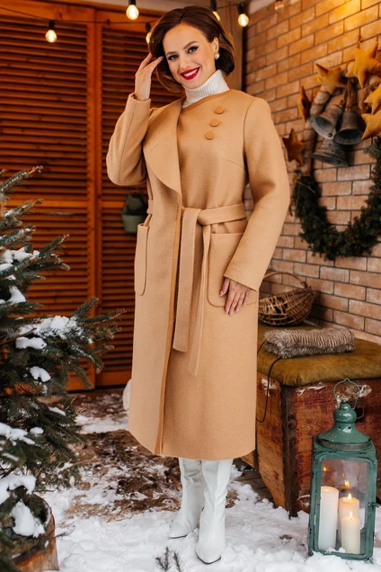 Пальто демисезонное выполнено в комбинации добротной пальтовой ткани с эко-кожей (отделочным материалом). Пальто полуприлегающего силуэта со смещенной ассиметричной застежкой на петли-пуговицы и потайные кнопки, под пояс. Спинка со средним швом и талиевыми вытачками. По переду нагрудные вытачки, крупные накладные карманы. Справа обработана декоративная прорезь для пояса. Край борта обработан планкой из эко-кожи. Горловина округлой формы. Рукава втачные, двухшовные. Пальто на подкладке.