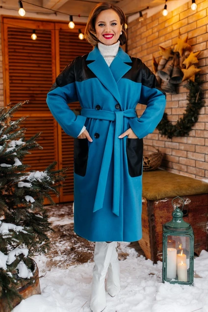 Сочетание фактур и гармония в цвете никого не оставит равнодушным. Мы предлагаем Вам ультра-модное пальто в черно-белой гамме в сочетании с эко-кожей. Пальто свободного силуэта. По переду и спинке с отрезными кокетками из эко-кожи. На полочках обработаны накладные карманы. Спинка со средним швом. Воротник пиджачного типа. Пальто на подкладке. Дополнено поясом, что позволяет регулировать ширину талии.