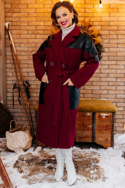 Пальто 2738 бордо + черный Мода-Юрс
