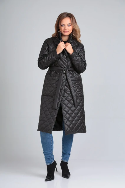 Пальто утепленное стеганное с центральной двубортной застежкой на пришивную пуговицу, отложным воротником и лацканами. По переду – накладные карманы. Спинка цельная. Рукав длинный втачной, двух шовный. Пальто со съемным поясом. Утеплитель синтепон 100гр/м2) Рассчитано на температурный режим до -0 (указанная температура комфорта может зависеть от индивидуальной восприимчивости к холоду). На модели куртка размера 46 (параметры модели 87-67-102, рост 170).