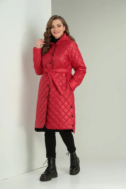 Пальто стеганое утепленное (синтепон 100гр/м2) с капюшоном на подкладке. Модель свободного кроя. Застежка центральная на кнопки. Спинка цельная. Рукав прямой втачной, одно шовный, по низу рукава отложная манжета. Пальто со съемным поясом. Карманы в боковых швах. Низ пальто фигурный, удлиненный по спинке. Боковые швы внизу переходят в шлицы на кнопках. Рассчитано на температурный режим от -2 до +15 (указанная температура комфорта может зависеть от индивидуальной восприимчивости к холоду).