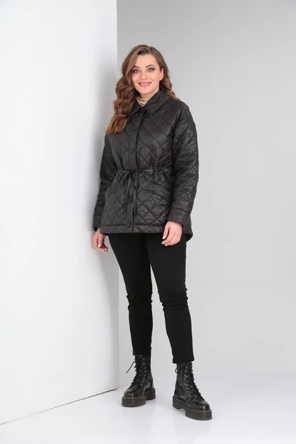 Пальто стеганое утепленное (синтепон 100гр/м2) на подкладке со спущенной линией плеча. Застежка центральная на кнопки. Спинка с кокеткой. Рукав длинный втачной, одно шовный, низ рукава с притачной манжетой. Пальто со съемным поясом. По переду прорезные карманы с листочкой. Низ куртки фигурный. Воротник отложной. По линии талии идет кулиса с узким поясом из основной ткани. Рассчитано на температурный режим от -2 до +15 (указанная температура комфорта может зависеть от индивидуальной восприимчивости к холоду).