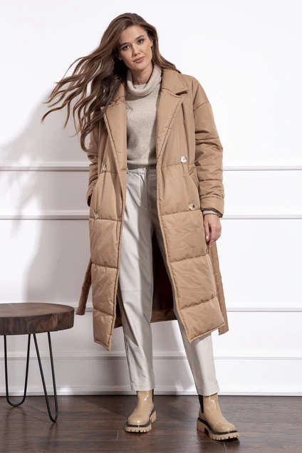 Стильное и уютное стеганое пальто из плащевой ткани на инновационном утеплителе синтепух, двубортное с застёжкой на пуговицы, длиной миди. Воротник отложной с цельнокроеными лацканами. Предусмотрены функциональные карманы прорезные наклонные листочки. Утеплитель изготовлен из тонких силиконизированных волокон, мягких на ощупь, напоминают пух, которые изготовлены без химических и термических связующих, поэтому не боится стирки с порошком. Имеет высокие теплозащитные свойства, при температуре -25 не дает замерзнуть.